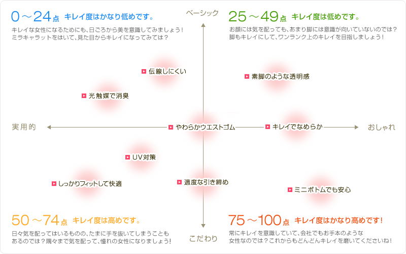あなたは日ごろ、キレイになるためにどれだけ意識を持っていますか!? 自分のキレイ度を知って、女っぷりをあげましょう!あなたのキレイ度にあったストッキングもご紹介します!