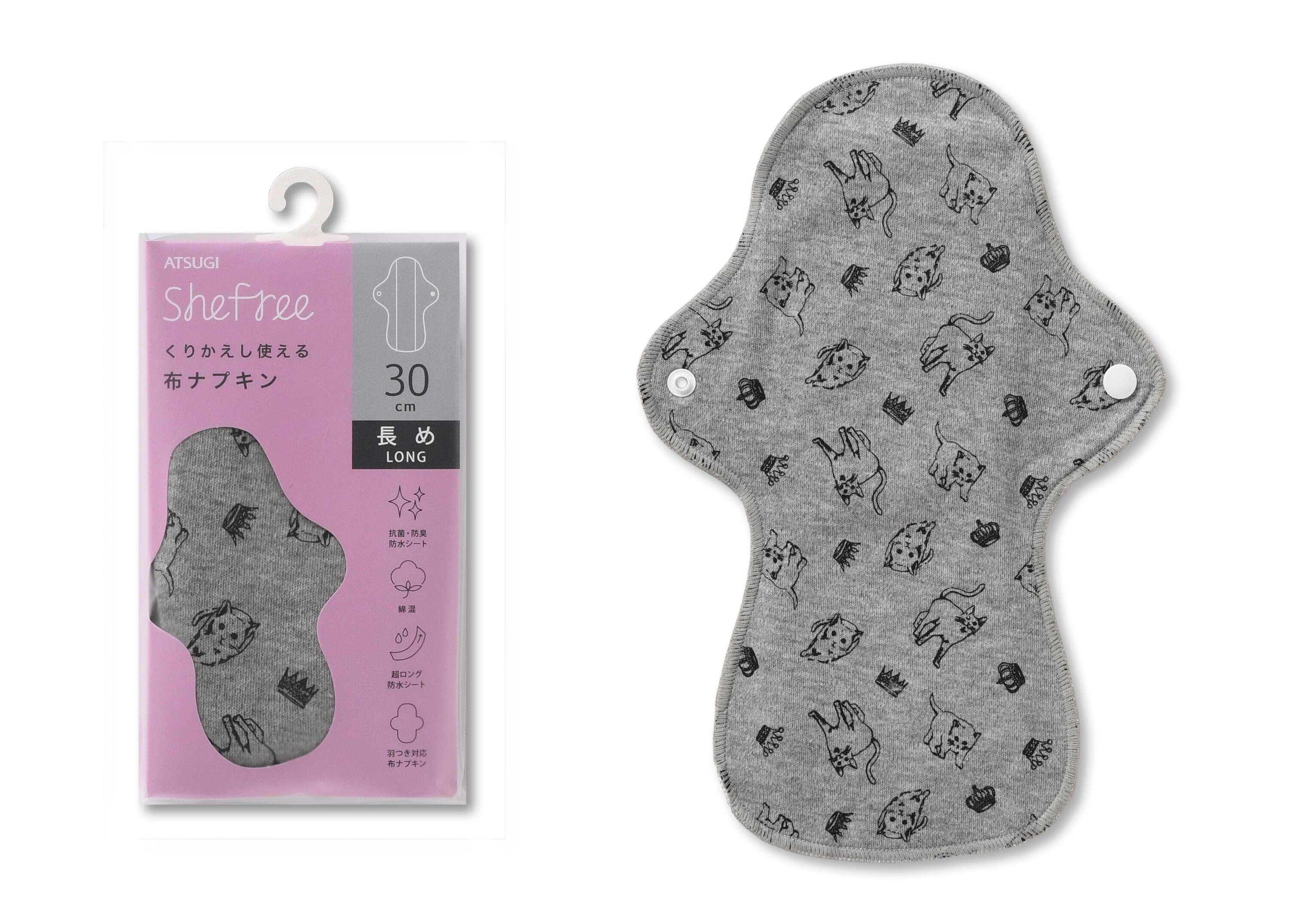 Shefree 布ナプキン ネコ柄 30cm丈